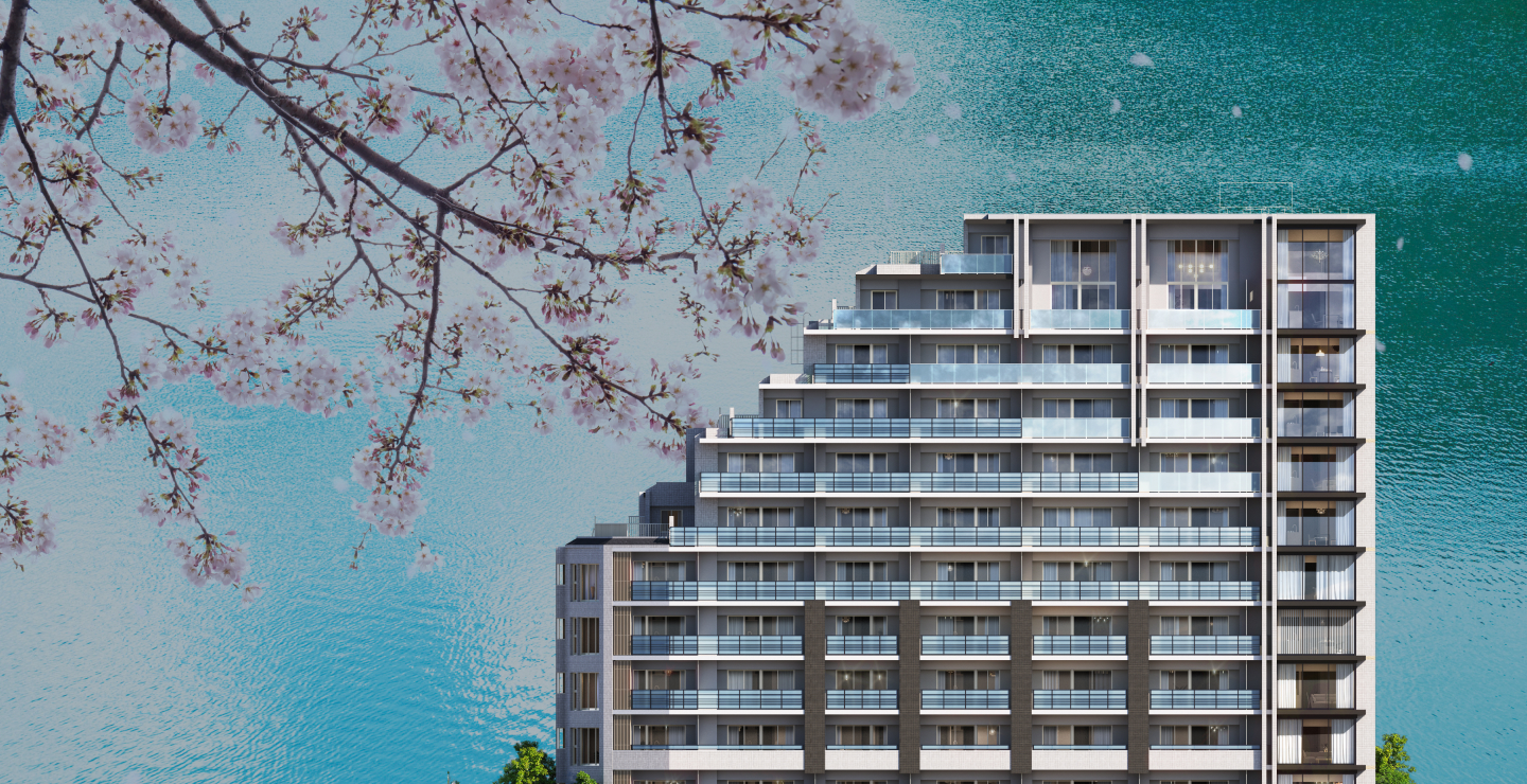 • ※掲載の外観完成予想CGは、設計図を基に作成したもので形状・色等は実際とは異なります。施工上の理由及び改良のため、変更となる場合がございます。なお、外観形状の細部、設備機器等は表現していません。植栽は計画段階のものであり、変更となる場合がございます。また特定の季節、時期、または入居時を想定して描かれたものではございません。葉の色合いや枝ぶり、樹形は想定であり、竣工時には完成予想CG程度には成長しておりません。