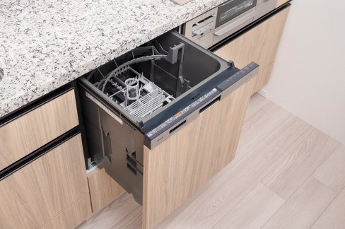洗浄から乾燥までワンタッチで行えるスライドオープン式のビルトイン大容量タイプ。