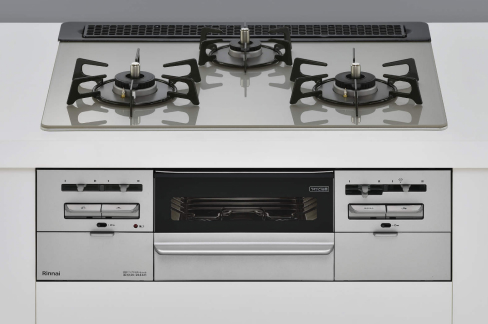 耐久性とお手入れのしやすさを備えた見た目も美しいガラストップコンロ。無水両面焼きグリル付き。