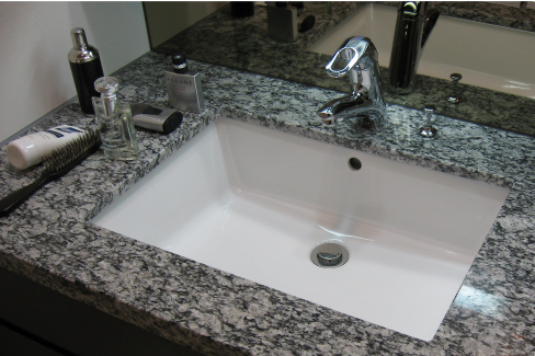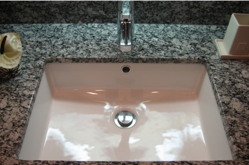 天板は天然御影石、ボウルは陶器製を採用した洗面カウンター。美しさと機能性を両立しました。