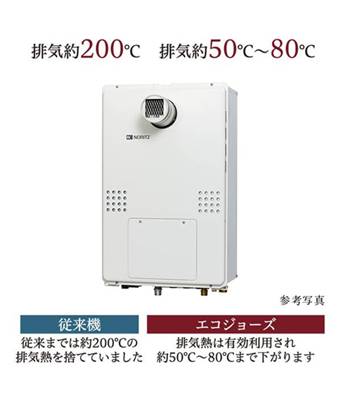 少ないガスで効率よくお湯を沸かすことができ、光熱費を節約できる給湯器「エコジョーズ」。