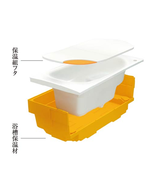 お湯が冷めにくい、浴槽保温材と保温組フタのダブル保温構成の浴槽を採用しています。
