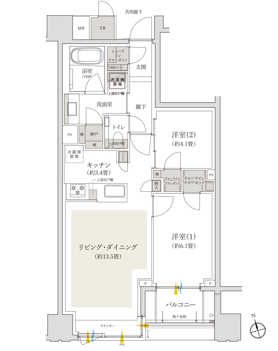 WIC=ウォークインクローゼット、SIC=シューズインクローゼット、N=納戸、TR=トランクルーム