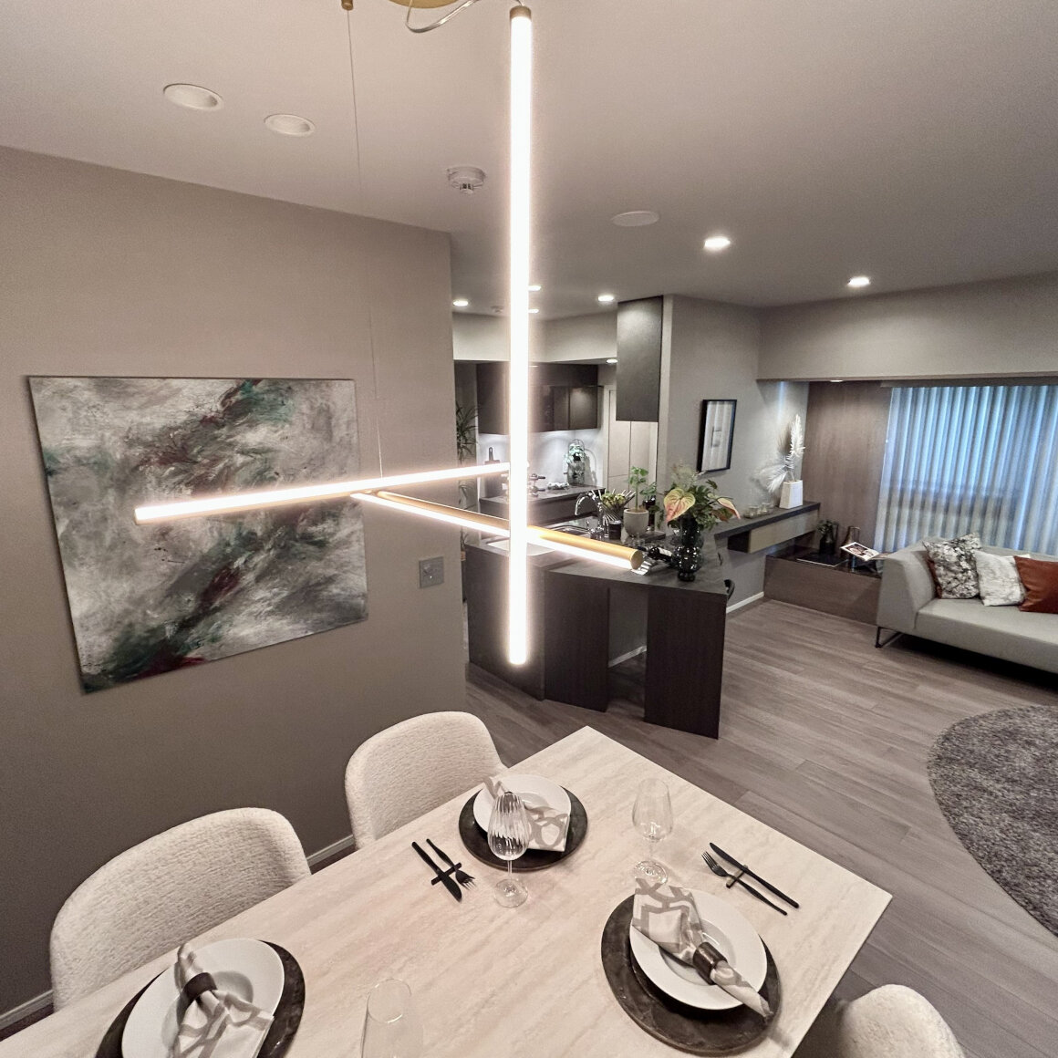 たとえば、モデルルームの照明計画には、ご夫婦の趣味や美意識がていねいに反映されています。