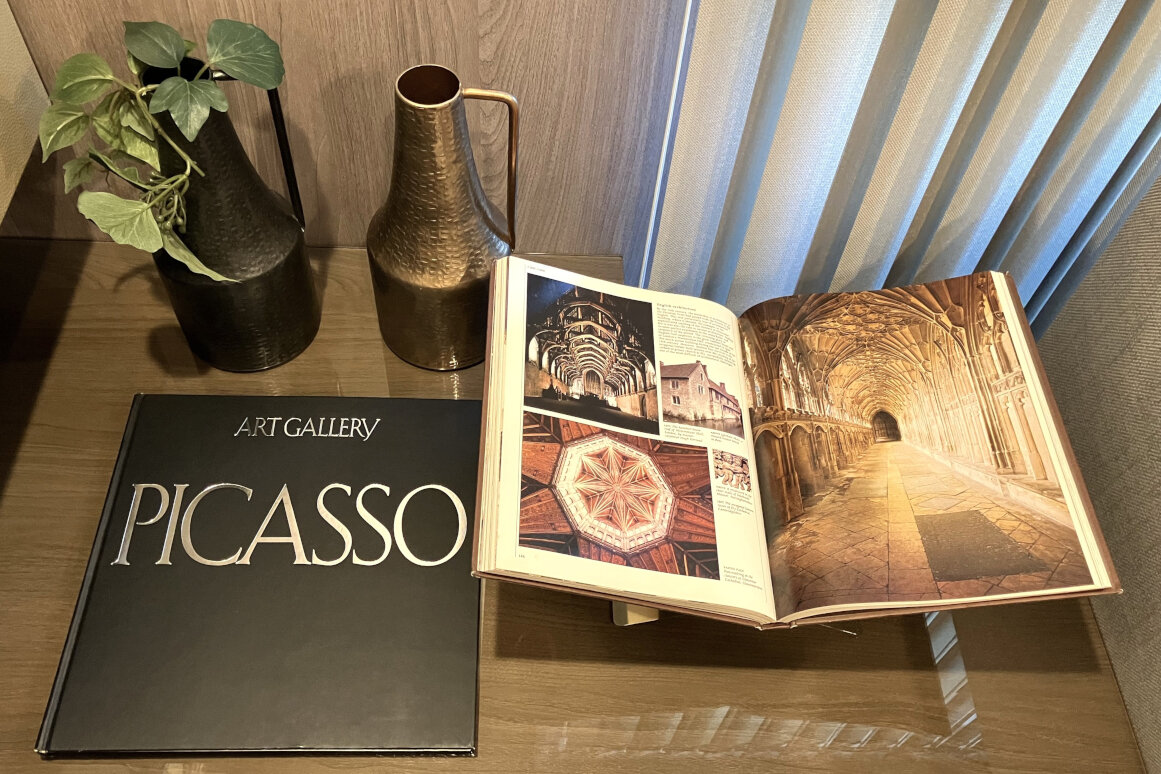 小物やファブリックにも、個性と感性が滲みます。立体感のあるやわらかいクッションは、空間にやわらかなぬくもりを添えています。アートに関する本やオブジェを組み合わせれば、ギャラリーのような趣が生まれます。そんな空間にみずみずしいグリーンが加わると、静かな中に生命感が宿ります。