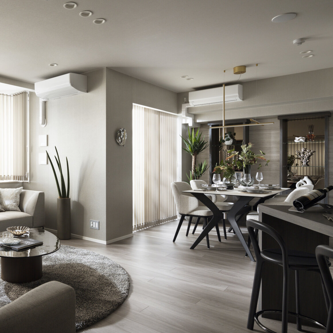 そんな空間づくりの実例としてご紹介したいのが、バウス日暮里のモデルルーム。ワインとお洒落を楽しむ40代夫婦の暮らしをイメージしたこの部屋では、「textile(生地)」と「greenery(緑)」をテーマに、洗練されたインテリアが広がっています。自分らしい空間を叶えるヒントが、さりげなく散りばめられた一室です。