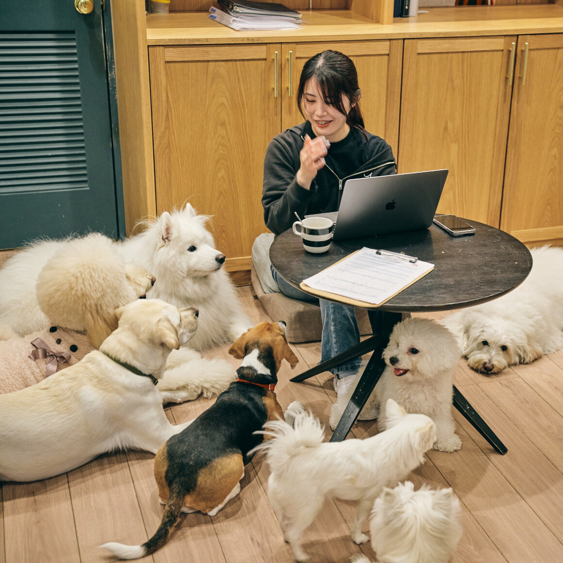 ただし、飼い主さんとのコミュニケーションや情報共有に関しては、かなり意識して、ていねいにやっていますね。ちなみに僕自身、喋るのはあまり得意ではないし、パーティーとかに行くと、ずっと会場の隅にいるタイプ(笑)。でも、飼い主さんにその子の頑張りなどを共有すると、自然と話が弾むんですよ。犬に対する愛情が共通項になって、人とのコミュニケーションが生まれるすばらしさを日々感じていますし、こうした関係性の構築が、僕も含めてクルーたちの成長にもつながっていると思います。