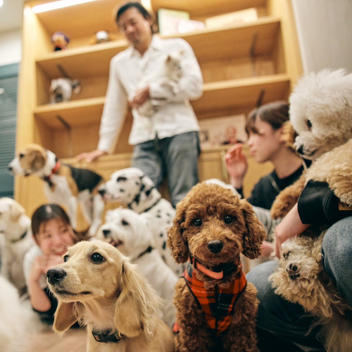 犬は群れで暮らす習性があるので、彼らにとっては、ここにいる犬も人も同様に「一つの群れ」として認識しています。