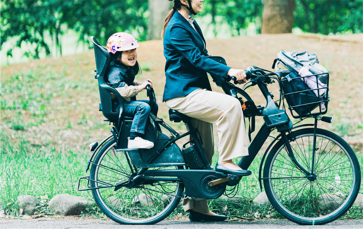 実際の生活者の声をもとに、共働き・子育て世帯へ配慮した当社ならではの商品企画も数多く生み出しています。 例えば、バウス日暮里では、共用部においては、3人乗り電動自転車が各戸1台は必ず停められる地下駐輪場、多用途に使えるマルチゲストルーム、機械式駐車場の入出庫の際にお子さまが安全に待つことができるスペース「キッズポケット」や、宅配物をその場で開梱できる荷捌きスペースなどを設けています。また、専有部では、家事の時短を実現したいという声に応えて、生ゴミ処理に便利なディスポーザーや自動洗浄する浴槽、外出先からスマートフォンでエアコンのON・OFFや、浴槽のお湯張り予約ができる「スマートリモコン」など、家事効率を高めるアイテムを多数採用しています。なかでも、共働き・子育て世帯にとって日々の移動手段ともなる自転車に関しては、子育て経験のある社員の意見などもヒアリングし、あらゆるシーンを想定して、さまざまな設備を導入しています。