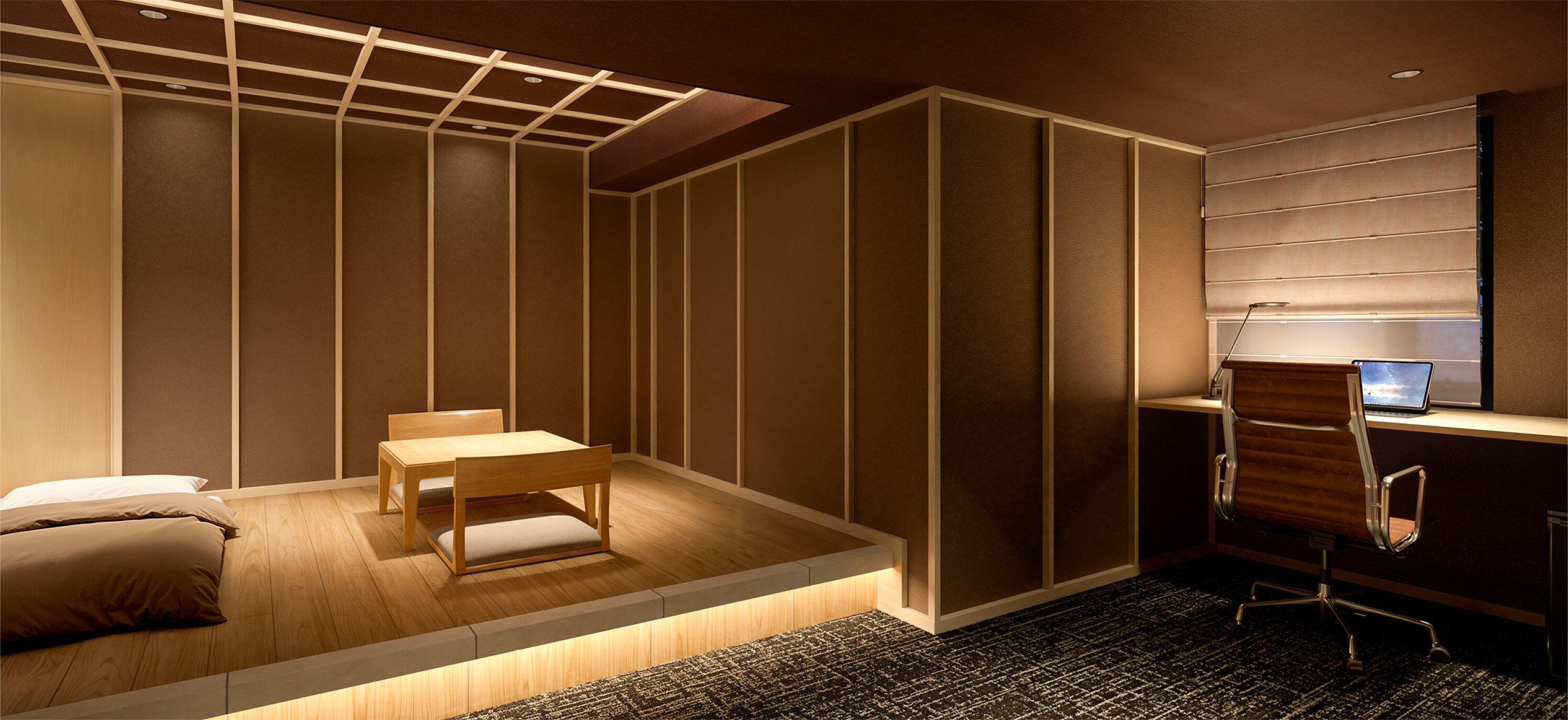 近年、都市の住まいの広さは限られる傾向にあるため、共用部をより有効に活用すべきだと考え、従来のゲストルームを、暮らしを支える"使える空間"「マルチゲストルーム」へと進化させました。それは、単なる来客の宿泊用ではなく、住む方々の日常にも活かせる共用空間です。親戚や友人を迎える際は、快適な滞在空間としてのクオリティを確保。一方で、小さなお子さま連れ同士で集まって、お子さまたちの声も、時間も気にせずにおしゃべりが愉しめる小上がりスペースや、自分のパソコンを持ち込んで作業に集中できるデスクコーナーを設置。住む方の暮らしがさらに豊かになることを目指し、多様な使い方ができる共用空間として設計しました。