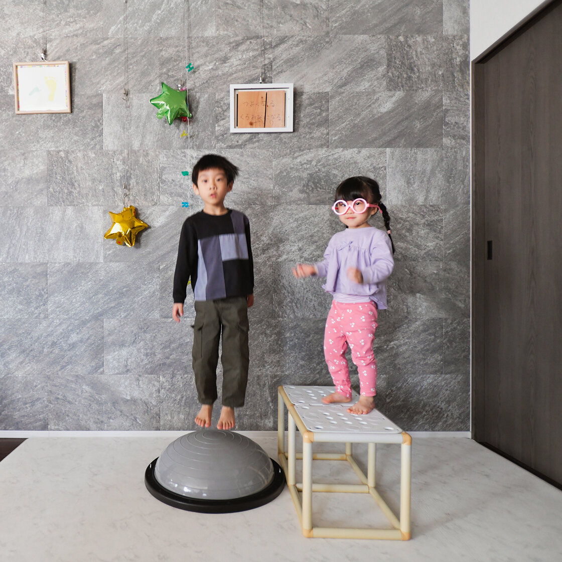 さらに室内を広く見せているのが、ルーフバルコニーの存在です。お子さんたちがそのまま出入りできるように人工芝を敷き、アウトドア用のテーブルをしつらえてあるルーフバルコニーは、まるでリビングとひと続きの公園のよう。お天気の良い日にはランチを用意して、青空の下でファミリーピクニックをすることが増えたそうです。「兄妹で口をそろえて『おうちで遊びたい!』ということが以前よりも増えましたね。室内でものびのび遊べるのがうれしいみたい」と妻Hさんも満足そう。
