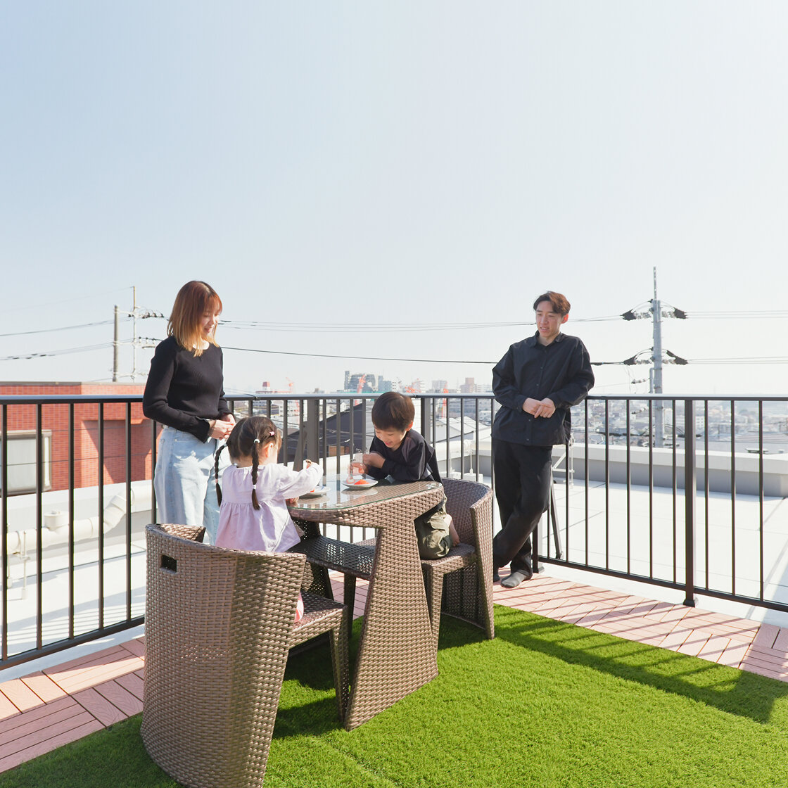 住空間にゆとりを求めていたK様ファミリーにとって、そんな鷺沼に建設される平均専有面積約79㎡の広さを持つバウス鷺沼Hillsは、まさに希望通りの物件だったといいます。なかでもK様ご夫妻が惹かれたのは、94.98㎡の居住部に加え、28.20㎡のルーフバルコニーがある部屋。「間取りの良さはもちろんでしたが、一番の決め手になったのがルーフバルコニーでした。自宅でのびのびと遊べる環境が整えば、忙しいときでも公園に連れて行かなきゃ!という焦燥感がなくなると思ったんです」と振り返ります。
